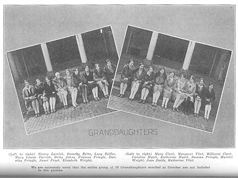 Those who Came Back (out-of-town alumnae only): Nanne Weakley Barth, Hattie Taylor Chanell, Alice Dunning Flick, Jane Hyde, Nancy Nulton Larrick, Lottie P. Magee, Louise Lawrence Miller, Mabel Day Parker, Olive Mast Pennegar, Edith Powell Pringle, Anna M. Slease, Marion Dibert Suppes, Margaret Hukill Taylor.